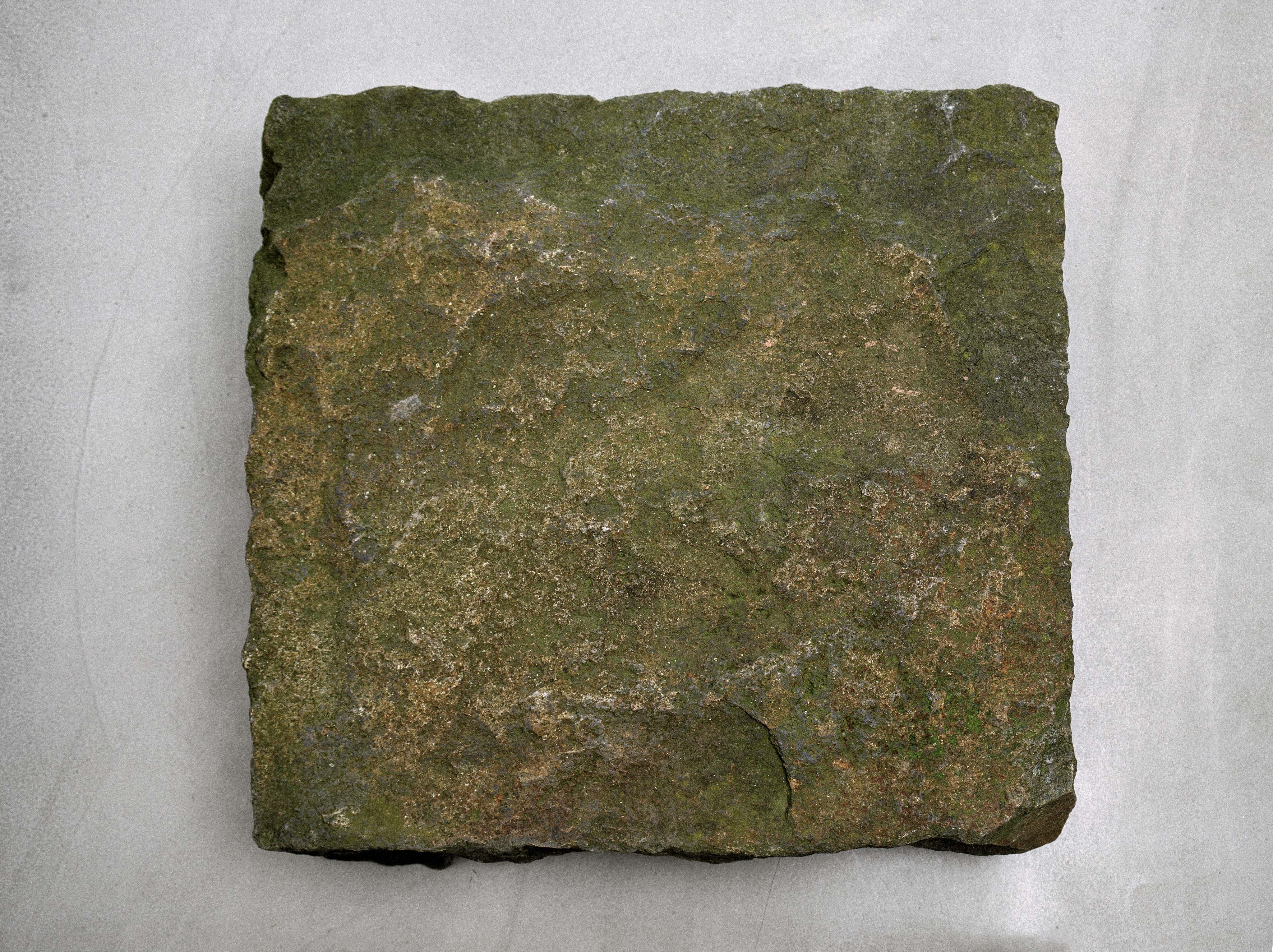 Floor sculpture Swedish gabbro/Syenit | coarse fissure, sawn, polished | 95 x 95 x 30 cm