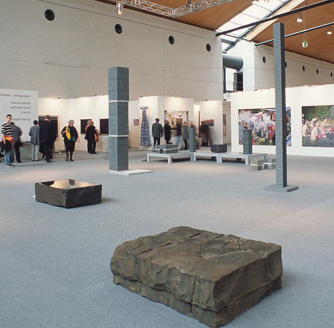 Bild 2: Gesamtansicht Skulpturenplatz mit Bodenskulpturen, Stelen und Podestskulpturen