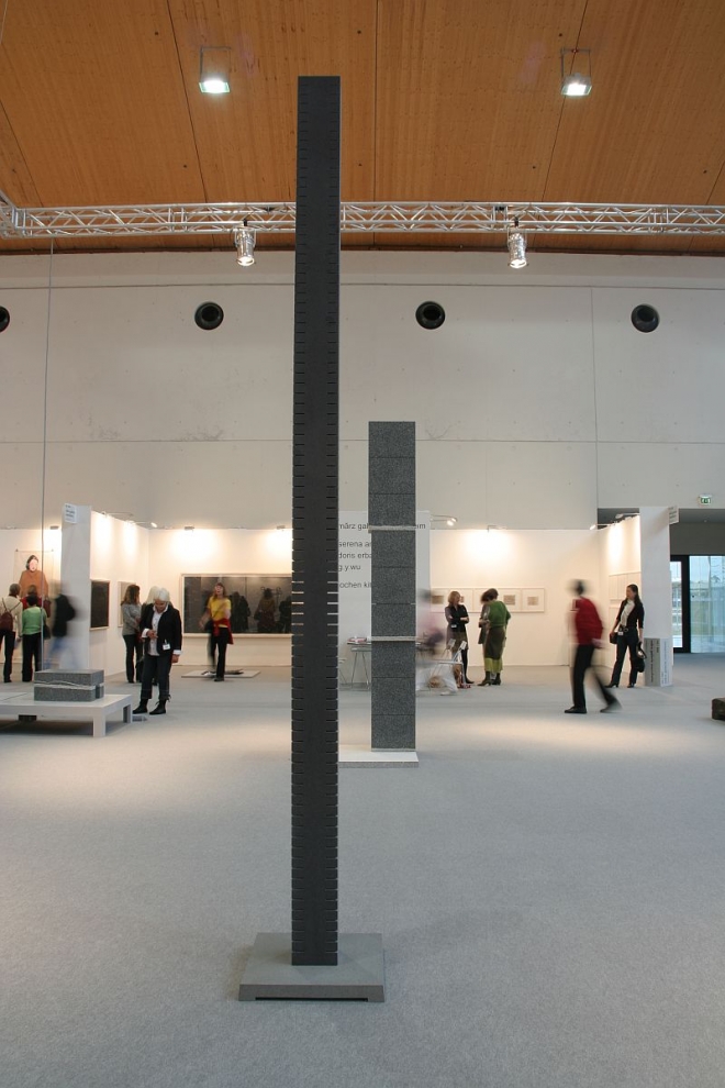 Bild 1: Stele re: EIXAMPLE 2008 | Im Vordergrund: Ferrum 2006 | li daneben: Klatschen einer Hand 2004 | Stele im Hintergrund: dan tien 2005