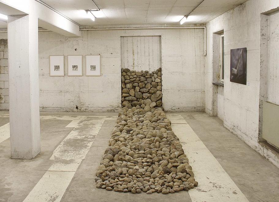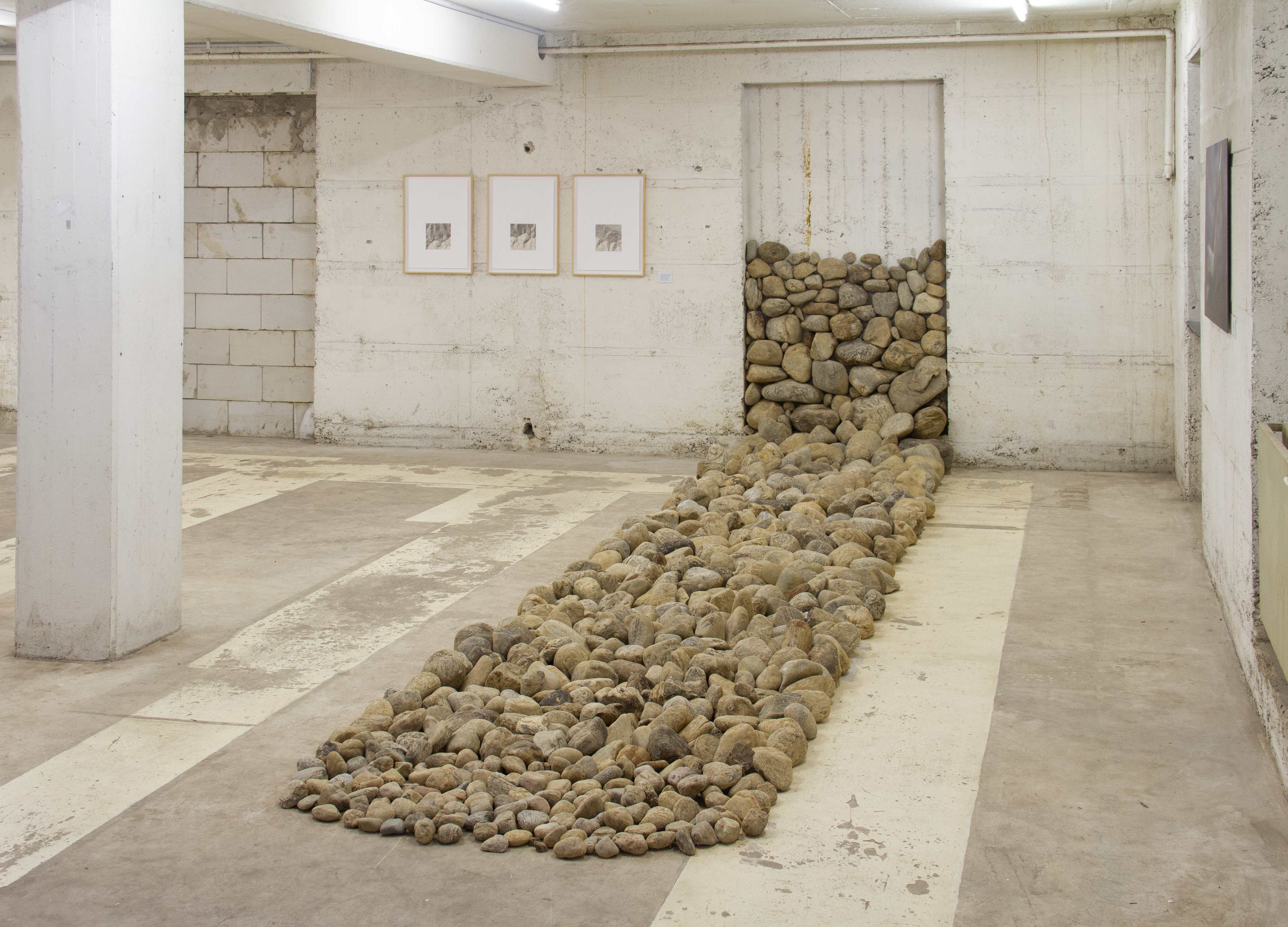 Kunstraum F 58, Freiburg, part of the project OUTSIDEINSIDE | Glacial alluvial pebbles from a large-scale construction project in Freiburg | 750 × 110 × 120 cm