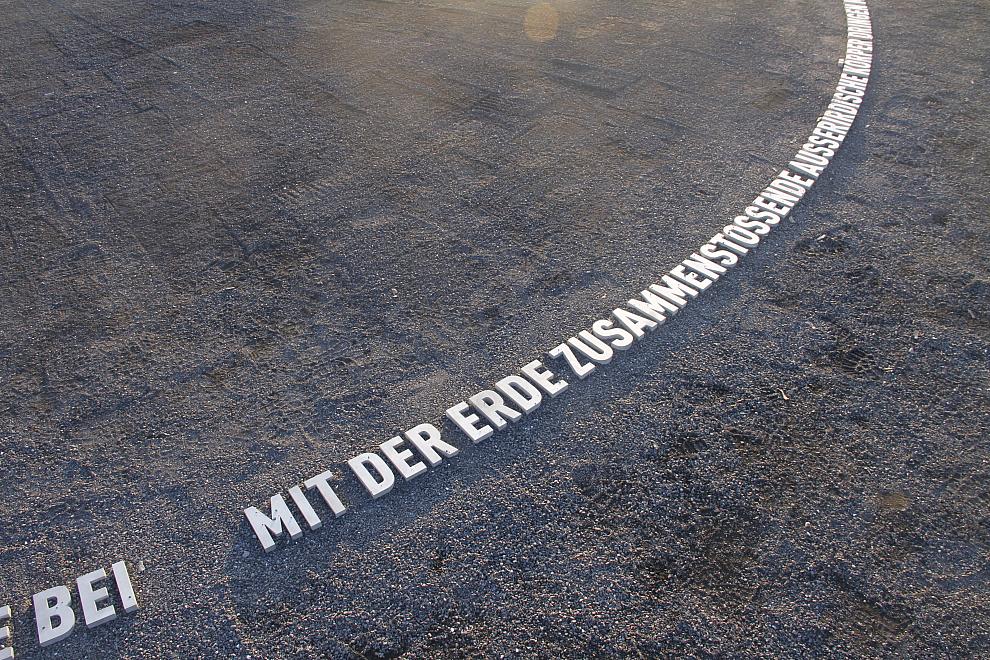 Das Boden-Schriftbild in Kreisform gibt in poetischer Weise diesen wissenschaftlich-analysierenden Text wieder.